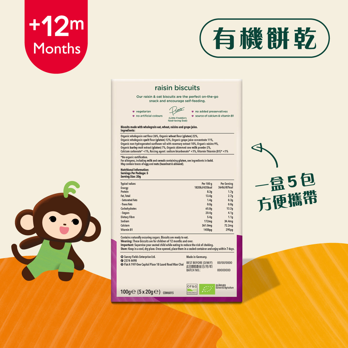 Little Freddie 有機葡萄乾餅乾 (5 x 20g)